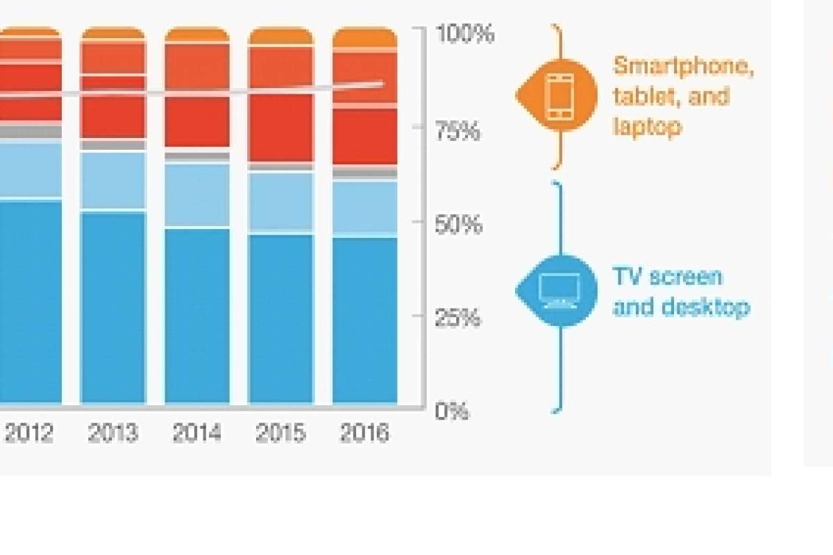 Среднее время смотрения на экранах мобильных устройств в 2016 году выросло более, чем на 200 часов в год, по сравнению с 2012 годом. Это произошло за счет увеличения общего времени просмотров ТВ и видео на 4 часа в неделю. Одновременно с ростом объемов смотрения на мобильных устройствах сокращается время телесмотрения — перед экранами ТВ респонденты проводят в среднем на 2,5 часа в неделю меньше, чем 4 года назад. Тем не менее, в целом, интерес к ТВ и видео не уменьшается.