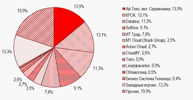 Крупнейшими игроками рынка IaaS по итогам 2015 года являются компании «Ай-Теко», «КРОК», DataLine, Softline и «ИТ-Град», на долю которых приходится более 55% всей выручки от услуг IaaS в публичных и гибридных облаках.