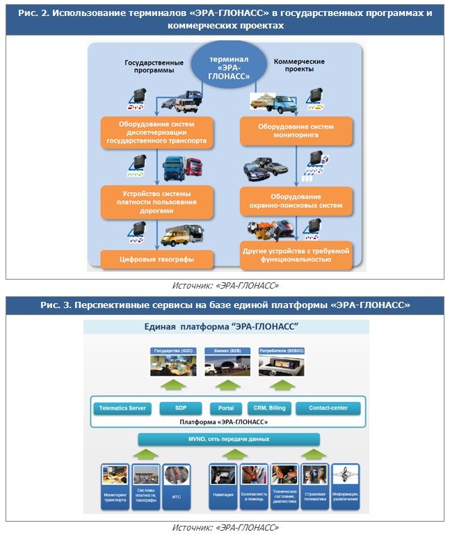 В целом для реализации как государственных программ, так и коммерческих проектов вместо набора разнородного оборудования достаточно было бы использовать один предустановленный терминал «ЭРА-ГЛОНАСС» и необходимые дополнительные модули (рис. 2). Это позволило бы существенно (до 50 %, по оценкам экспертов) сэкономить средства бюджета и частных инвесторов, в том числе при реализации таких крупных проектов, как: