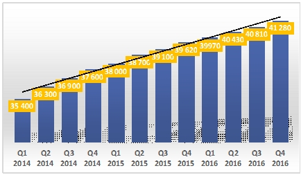 По данным ИАА TelecomDaily, общее количество абонентов платного ТВ в России по итогам 2016 года составило 41,28 млн. абонентов. Таким образом, зафиксирован прирост на уровне 1,66 млн. новых подписчиков за год. Четвертый квартал 2016 года оказался самым лучшим по приросту абонентов в 2016 году.