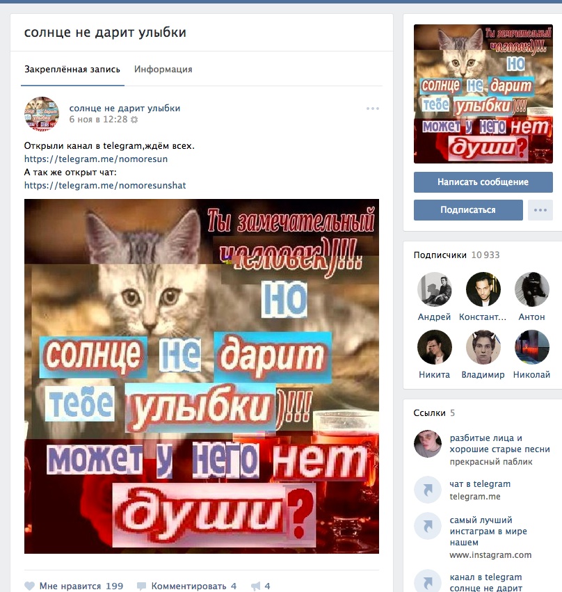 Многие из «групп смерти» регулярно блокируются — тем не менее, нам удалось обнаружить более 15 закрытых групп и аккаунтов, которые на данный момент не заблокированы. Большинство таких групп не имеют характерных «ключевиков и хэштегов» и находятся в минорно-суицидной тематике, НО почти все авторы постов об «игре» состоят в них. Эти аккаунты отличает намеренное коверкание русского языка, добавление букв в слова, использование картинок на английском языке, а в теле поста просто перевод того, что написано на английском.