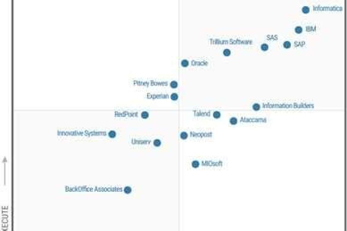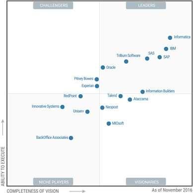 Независимое исследовательское агентство Gartner ежегодно выпускает аналитические отчеты о решениях в области обеспечения качества данных. По результатам последнего доклада Gartner Magic Quadrant for Data Quality Tools (Магический квадрант решений по обеспечению качества данных) за 2016 год Informatica стала лидером рейтинга десятый год подряд.