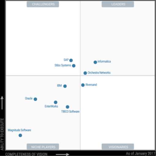 Решение по управлению мастер-данными (MDM) корпорации Informatica возглавило рейтинг решений по управлению данными по результатам последнего исследования международного исследовательского агентства Gartner.
