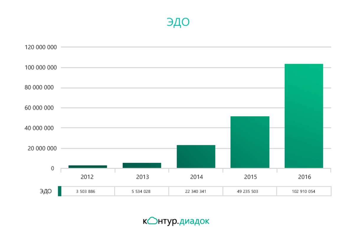 Через системы СКБ Контур передано 290 млн электронных сообщений, не считая отчетности в контролирующие органы. Из них 103 млн — юридически значимые документы (ЭДО), отправленные через Диадок, и 187 млн EDI-сообщений, прошедших через систему EDI.Контур. В трафике ЭДО 38 % занимают счета-фактуры, 25 % ― ТОРГ-12, 5 % — формализованные акты. Продолжает расти доля неформализованных документов ― по итогам 2016 года она составила 21 % против 16 % в