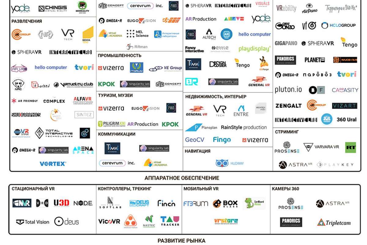 В результате анализа Ассоциация представила Карту российского рынка дополненной и виртуальной реальности и рассказала, как сейчас развивается этот рынок в России. Карта составлена по итогам анкетирования участников и изучения деятельности компаний из открытых источников. В карту рынка вошли компании, самостоятельно разрабатывающие AR/VR проекты, у которых уже есть выпущенные на рынок продукты либо имеются прототипы.
