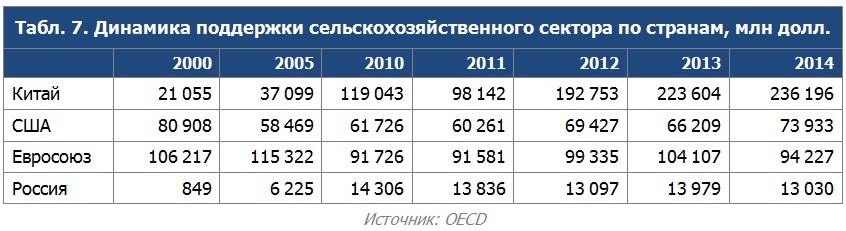 Несмотря на то, что формально механизмы поддержки АПК продолжают действовать, реальная государственная финансовая помощь отрасли сокращается. Уровень государственной поддержки сельского хозяйства в России в
