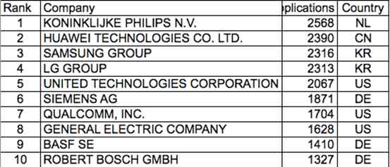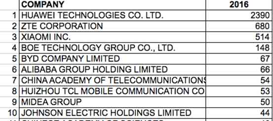 Отчет EПВ показывает, что в 2016 году китайские компании подали 20% от общего количества патентных заявок в сферах цифровых коммуникаций, компьютерных и телекоммуникационных технологий.