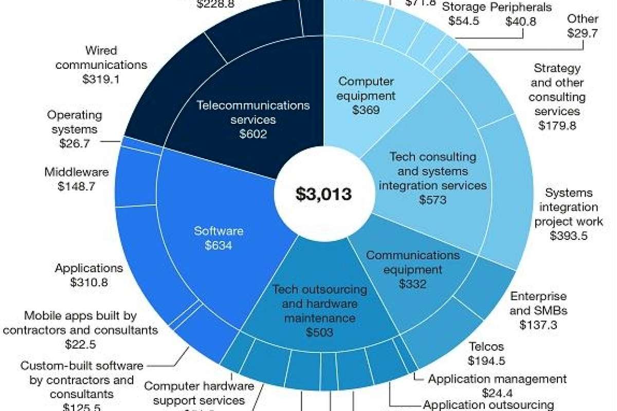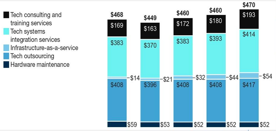 Структуру в виде денежного соотношение между различными подсегментами сегмента «Технические сервисы» (Tech Services) иллюстрирует диагр. 2, охватывающая
