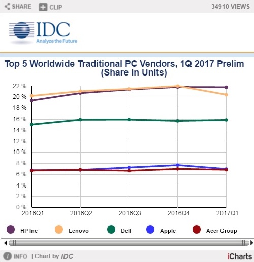 Source: IDC Worldwide Quarterly Personal Computing Device Tracker, April 11, 2017 |