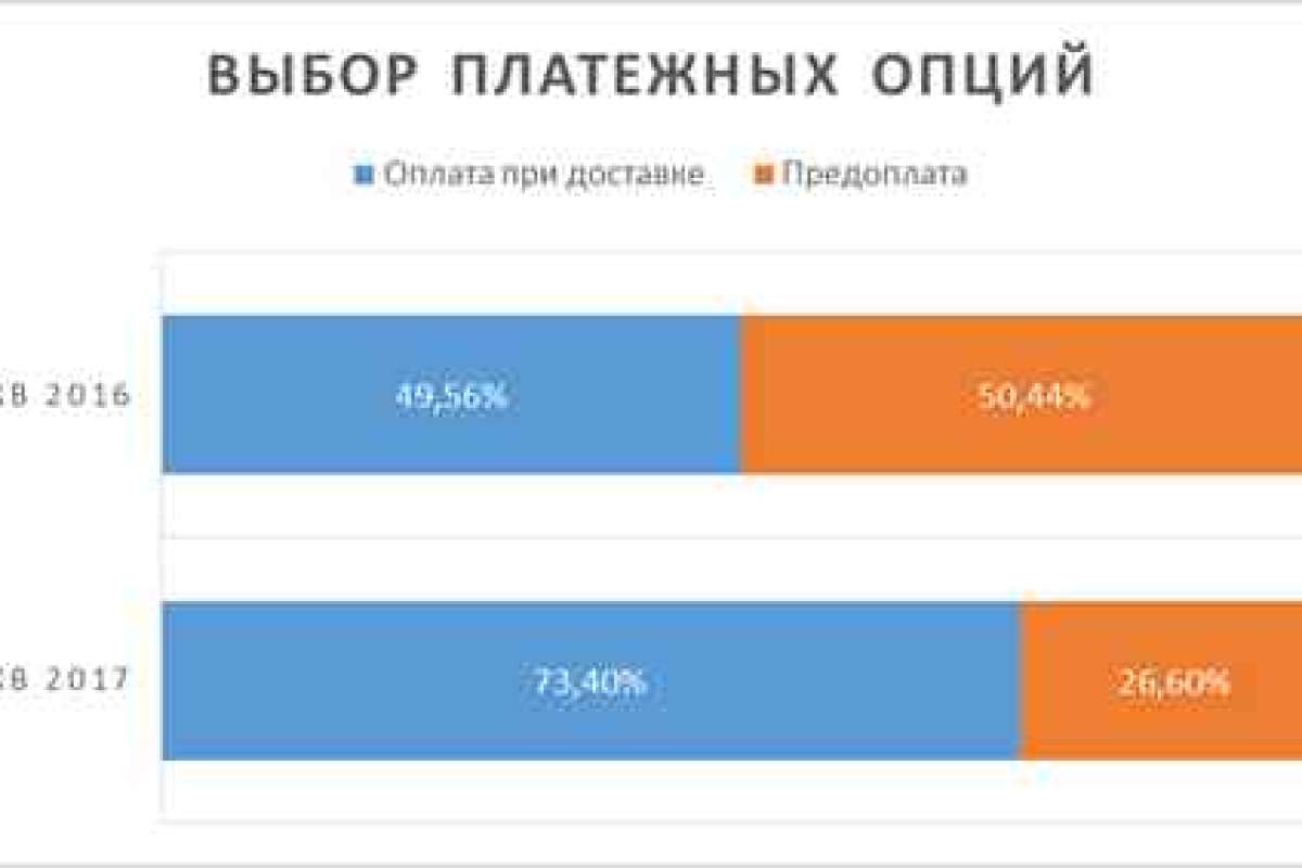 Россияне стали чаще оплачивать товары при получении у курьера, чем совершать онлайн-оплату заказа в интернет-магазине. Так, за период с января по март текущего года опцией оплаты при доставке от QIWI в интернет-магазине Le.ru воспользовались 73% покупателей, остальные 27% выбрали предоплату заказа на сайте. Для сравнения — в ноябре-декабре 2016 года соотношение покупателей, выбирающих между этими двумя опциями оплаты, было почти равное (49,5% и 50,5% соответственно).