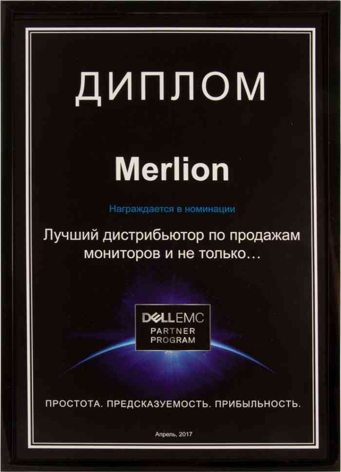 Компания MERLION по итогам работы в 2016 году, также, как и год назад, удостоена звания лучшего дистрибьютора по продаже не только клиентских решений, но и мониторов, о чем гласит надпись на дипломе «Лучший дистрибьютор по продажам мониторов и не только...».