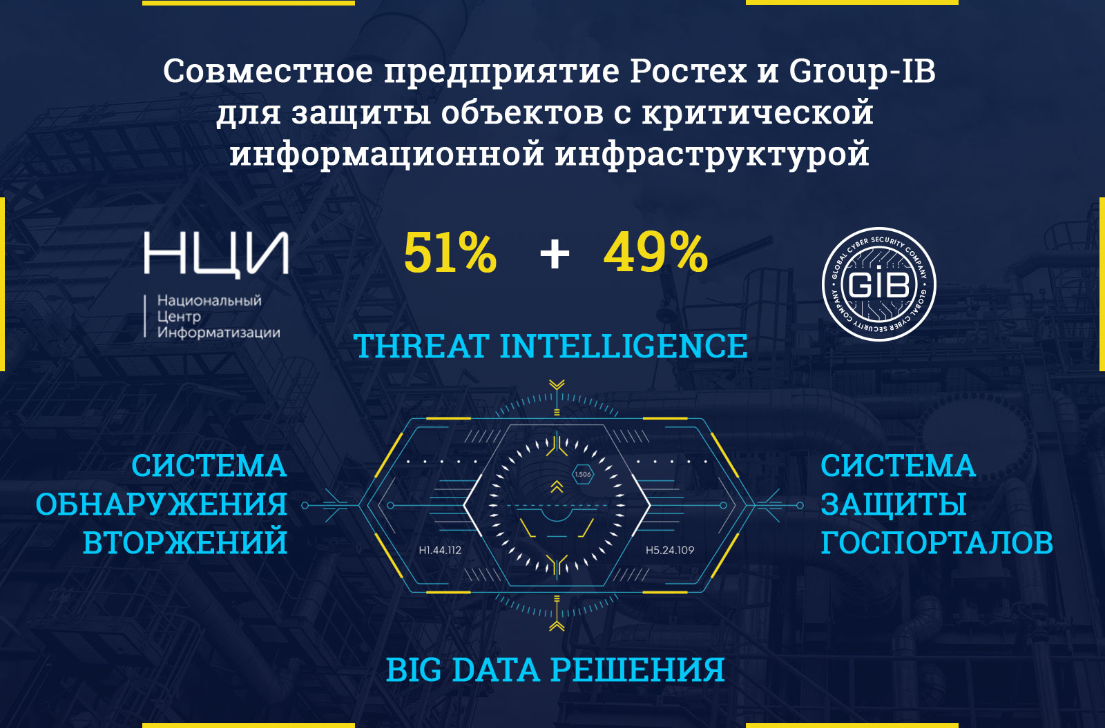 Национальный Центр Информатизации (НЦИ), дочерняя компания ГК «Ростех», занимающаяся разработкой, развитием и внедрением ИТ-продуктов, и компания Group-IB, специализирующаяся на производстве продуктов информационной безопасности и предоставлении сервисов по защите от актуальных киберугроз, создадут совместное предприятие по разработке и развитию решений противодействия компьютерным атакам.