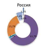 Российское отраслевое распределение утечек серьезно отличается от мирового. В мире более 25% утечек информации происходит из медицинских учреждений, в России доля таких утечек составляет 7%. Обращает на себя внимание высокая (в сравнении с общемировой) доля утечек, которые пришлись на банки и финансовые организации (12%).