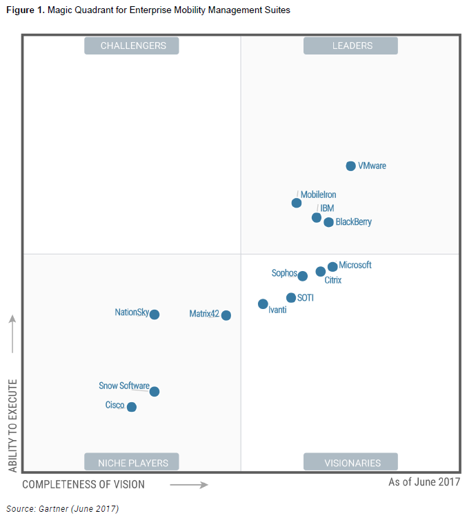 Gartner объявила компанию Sophos «провидцем» в ежегодном исследовании «Magic Quadrant 2017» в сфере управления корпоративной мобильностью (EMM). Sophos уже четвёртый год подряд удостаивается этого звания. Это в очередной раз доказывает, что на сегодняшний день решение Sophos Mobile является одним из лучших продуктов, сочетающий в себе два важнейших компонента: безопасность и управление мобильностью.