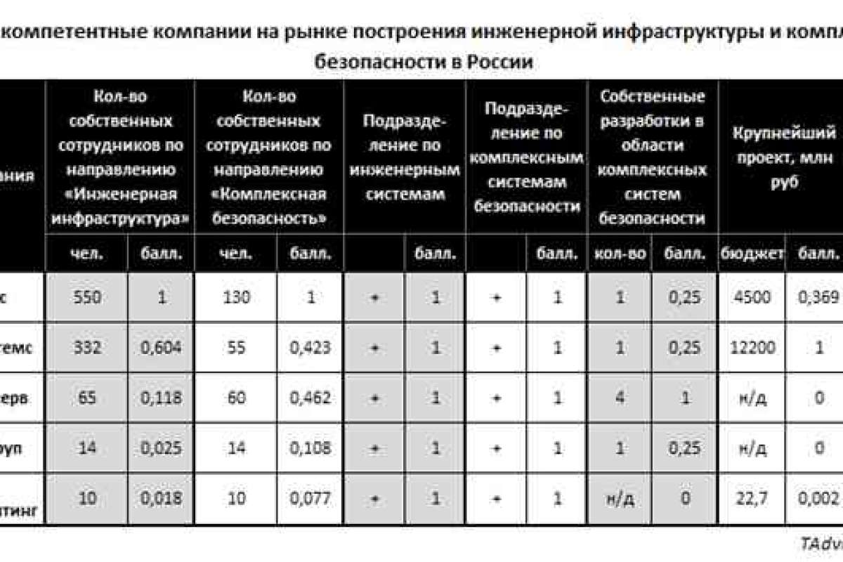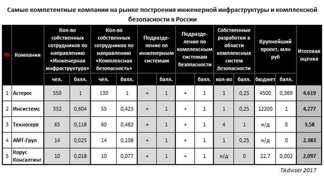 Рейтинг самых компетентных компаний на отечественном рынке построения инженерной инфраструктуры и комплексной безопасности
