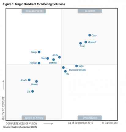 Компания Gartner поместила Cisco в сектор лидеров своего «магического квадранта» для конференц-решений (Gartner Magic Quadrant for Meeting Solutions).