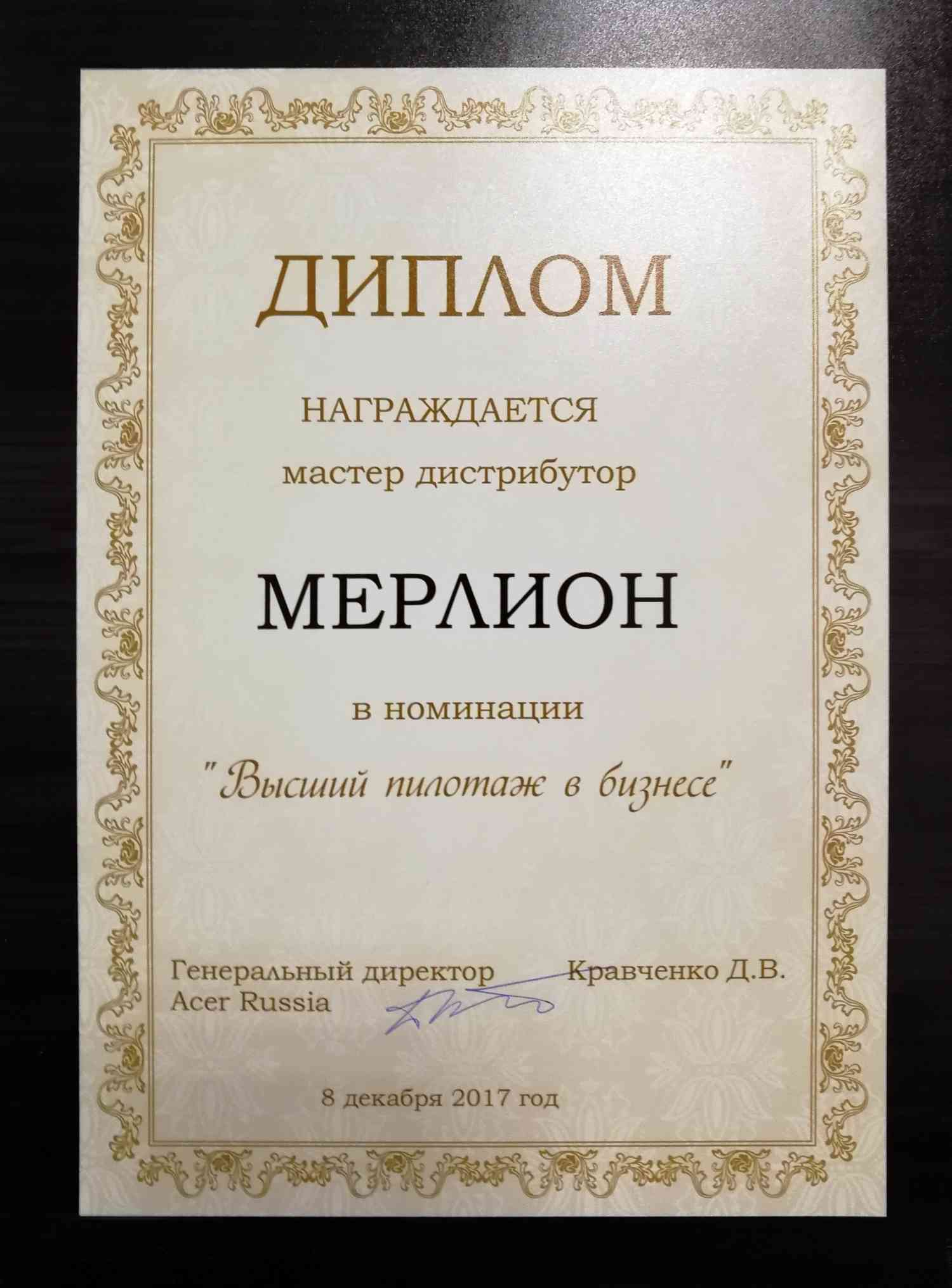 Полученное дистрибьютором звание полностью отражает его успехи. Уже более 10 лет на правах официального дистрибьютора (статус в Acer — мастер-дистрибьютор) MERLION успешно поставляет широкий спектр продукции этого производителя: персональные компьютеры всех типов (десктопы, неттопы, моноблоки, рабочие станции), а также ноутбуки, планшеты, смартфоны, мониторы, профессиональные панели, проекционное оборудование и аксессуары для них. На протяжении многих лет Acer стабильно входит в топ-10 самых востребованных партнерами брендов, представленных в портфеле MERLION. По итогам 2016 года (за который и получен диплом) уверенный рост продаж на фоне медленно восстанавливающегося рынка показали ноутбуки и мониторы этого вендора.