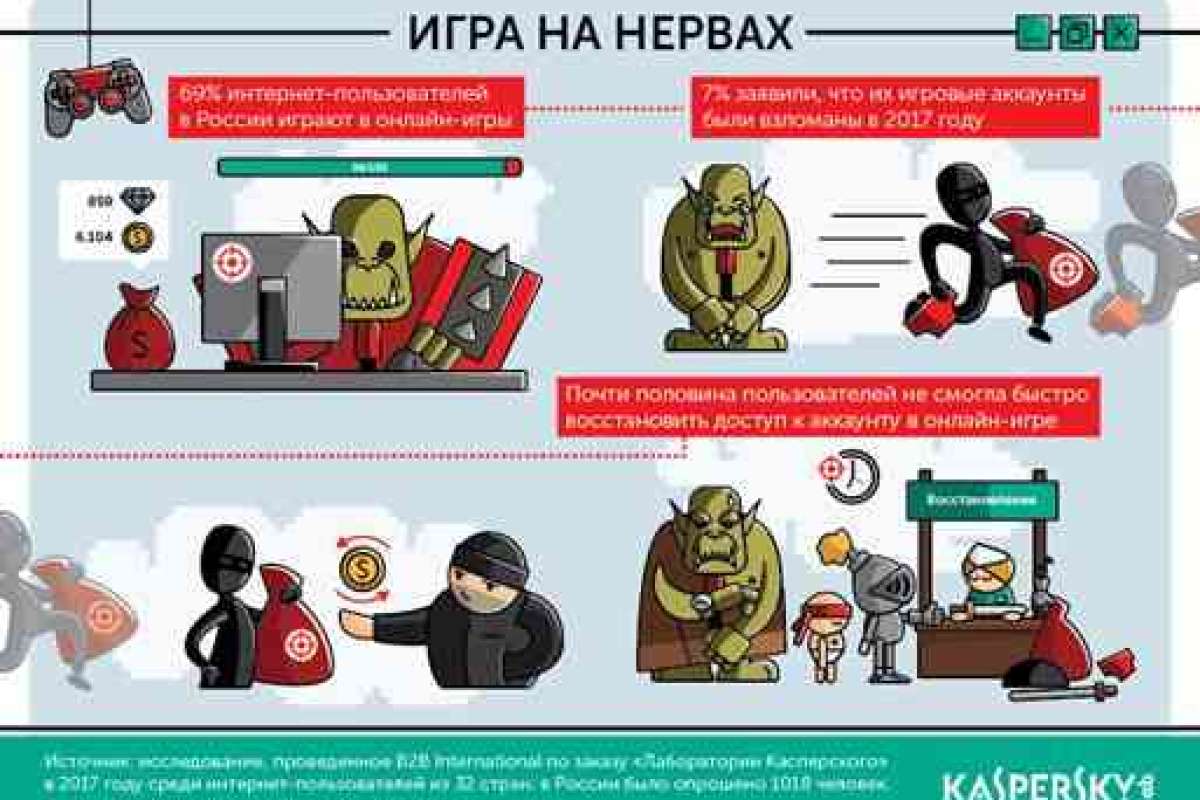 Игровой аккаунт можно потерять как в результате массовой утечки, так и атаки на конкретного пользователя. Как показало исследование «Лаборатории Касперского», 7% подвергавшихся атакам на свои учетные записи в интернете признали, что мишенью становились их игровые аккаунты. При этом почти половина атакованных респондентов признались, что им не удавалось быстро восстановить к ним доступ.