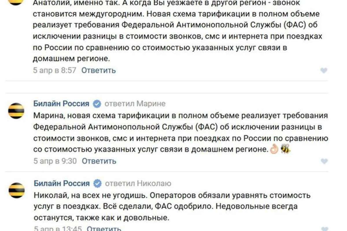ПАО «ВымпелКом» с начала апреля уведомляет своих абонентов об изменении условий тарификации услуг связи при поездках по России, а именно о введении платы в размере 5 руб./мин за входящие голосовые соединения при нахождении абонента за пределами «домашнего региона».