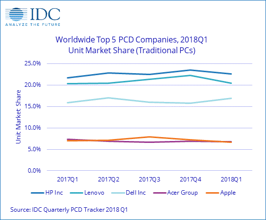 Источник: IDC Quarterly Personal Computing Device Tracker, 11 апреля 2018 |