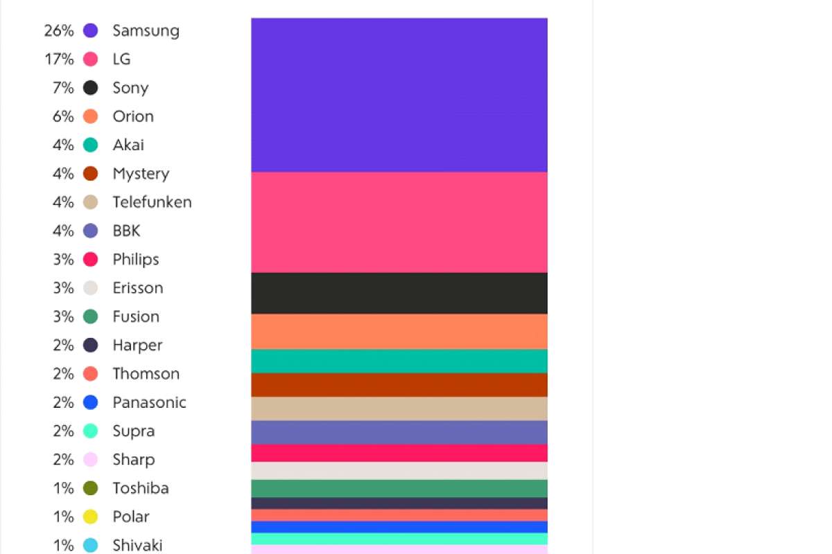 Анализ поискового трафика площадки позволил выделить двадцать наиболее популярных среди россиян моделей телевизоров. В ТОП-5 брендов вошли: Samsung, LG, Sony, Orion, Akai.