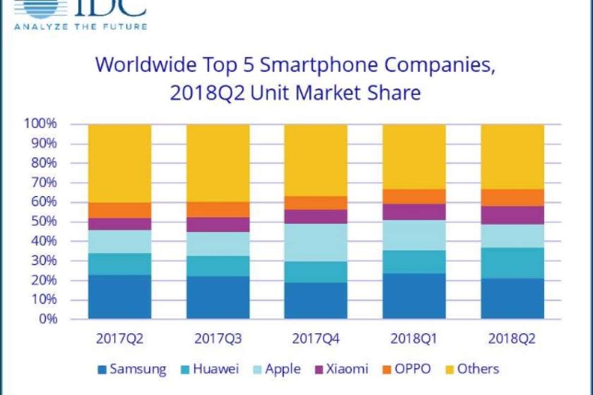 Выход Huawei на второе место обозначил первый квартал со 2 квартала 2010 года, когда Apple не была вендором номер один или два по доле рынка. Huawei поставила 54,2 млн шт. смартфонов, выйдя на второе место с рекордно высокой долей рынка, 15,8%. Samsung Electronics сохранила надежное лидерство, хотя финансовые результаты компании за 2 квартал дают основания предположить, что доход ее подразделения мобильных устройств может не столь успешно расти в будущем.
