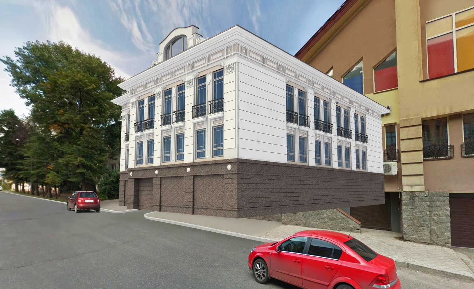 Следующий кейс уже сейчас вызывает интерес не только у строителей и архитекторов, но и у городских властей, футурологов и дизайнеров городской среды. Допустим, нам необходимо спроектировать новое современное здание, офис или торговый центр, в историческом центре города. В режиме дополненной реальности объект просто наложится на имеющийся городской антураж. Мы сможем увидеть фасад, но не будет понятно, как здание соприкасается с остальными постройками, будет ли оно закрывать или перекрывать деревья, тротуары, другие объекты. В режиме смешанной реальности иногда даже теряется разница между реальным объектом и новым спроектированным. Мы видим полностью ансамбль, и какое из зданий виртуальное — не сразу понятно (рис. 7 и 8). Принципиально нового качества информация позволяет более оперативно и более точно принимать решения о строительстве, согласовывать будущую застройку.