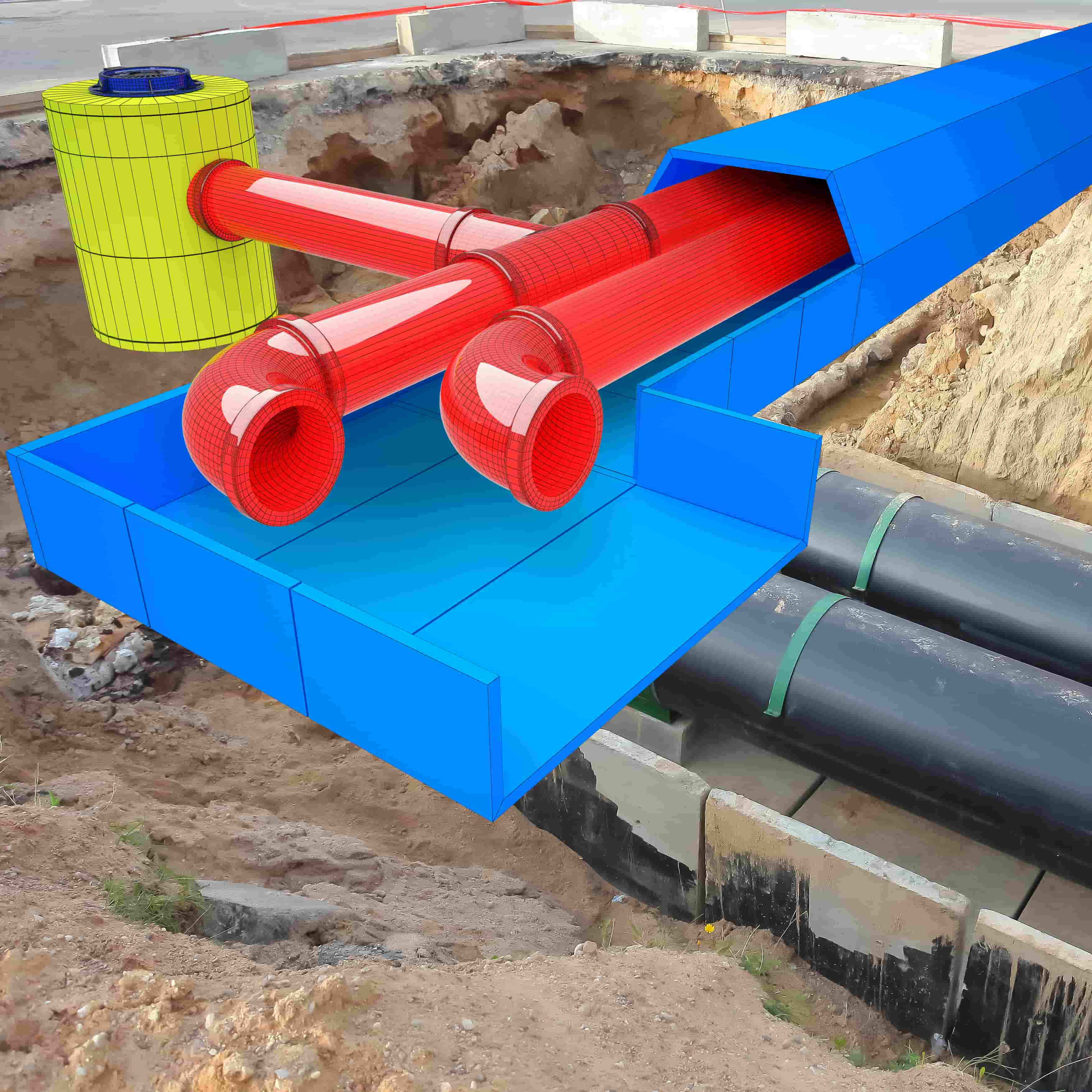 Следующий пример — это использование смешанной реальности при проектировании подземных коммуникаций. В режиме дополненной реальности мы увидим трубу, примерно прикинем, где она должна проходить. В режиме смешанной реальности у нас есть возможность сделать проекцию этой трубы на поверхность грунта, подсветить место выхода коммуникаций. Специалист на стройке может вбить колышек и запомнить это место, не тратя время на расчет метража и сверку с чертежами. Это позволит значительно сократить риск прорыва существующих коммуникаций экскаватором. К сожалению, это крайне часто происходит в обычной жизни и компании теряют деньги. В системе BRIO MRS мы эту проблему решили (рис. 5 и 6).