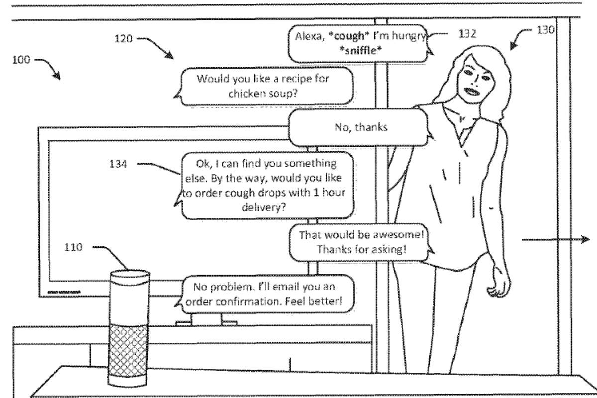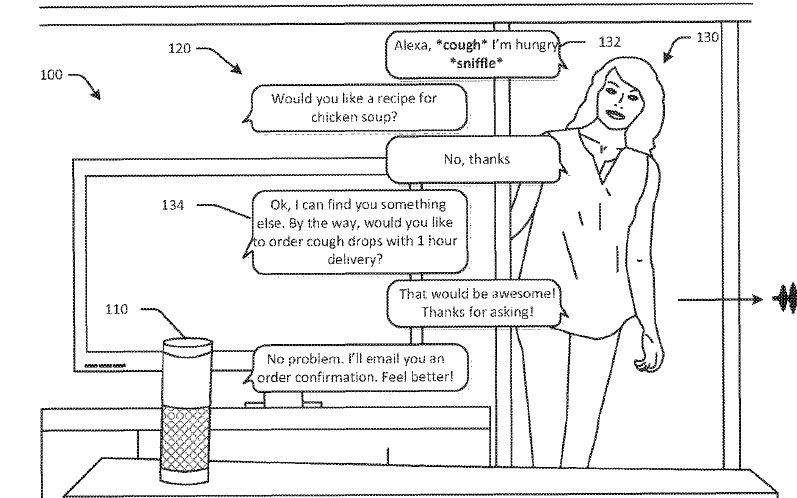 Идея, стоящая за новым патентом, лежит на поверхности. В самом деле: кому как не цифровому помощнику, который непрерывно, весь день напролёт слушает владельца, делать выводы о состоянии здоровья говорящего? На первом этапе Алекса, чьим интерфейсом служат постоянно подключённые к Интернету умные колонки, сможет достоверно определять появление в человеческом голосе нездоровых хриплых ноток, а также идентифицировать шмыгание носом, кашель и общее снижение тонуса, вызванное начинающейся простудой.