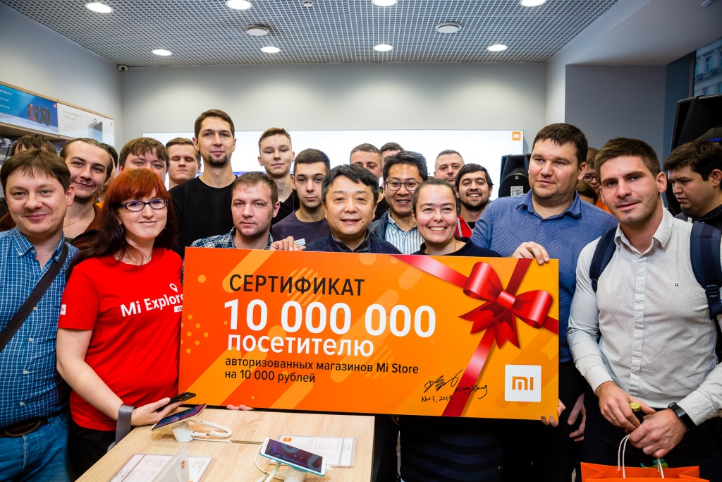 Юбилейного посетителя поздравил Ван Сян (Wang Xiang), старший вице-президент Xiaomi, вручив ему подарочный сертификат на приобретение товаров бренда Xiaomi на сумму 10 000 рублей и один из топовых смартфонов этого года — Mi 8. Отправляясь в Россию, Ван Сян взял с собой в демонстрационных целях образец новейшего смартфона Mi Mix 3, который еще официально не был представлен на Российском рынке. Он продемонстрировал аппарат посетителям магазина, которые получили возможность первыми познакомиться с новинкой будущего сезона. Завершая официальную часть, Ван Сян попробовал свои силы в качестве обычного продавца магазина и успешно реализовал несколько устройств, выполнив собственноручно все процедуры, предписанные кассиру флагманского магазина Mi Store.