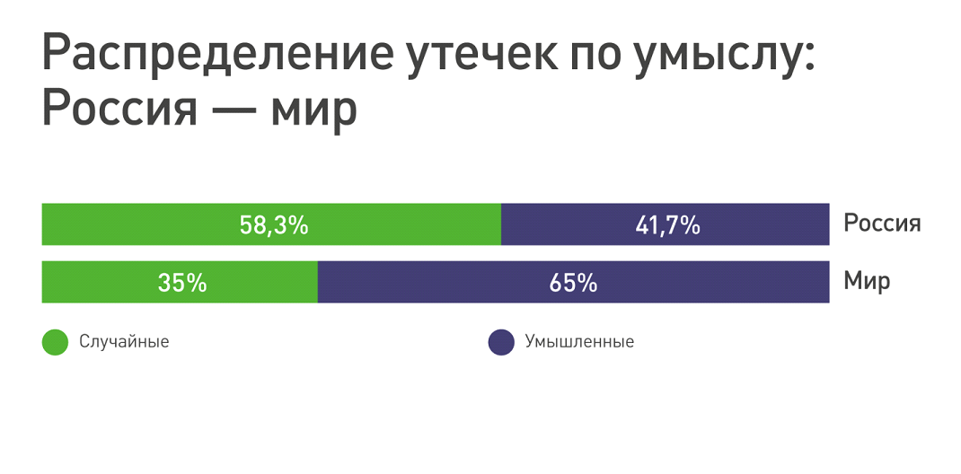 Значительная доля инцидентов в сфере Retail & HoReCa в 2017 году пришлась на умышленные утечки — 65% зафиксированных в мире случаев. (Рис. 3)