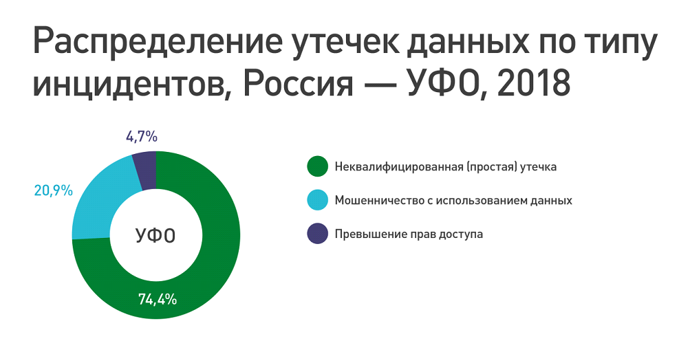 Как и в целом в России, в 90% случаев утечек данных в УФО причиной инцидента стали действия внутреннего злоумышленника в организации, или инсайдера.
