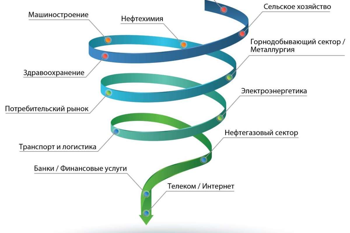 В центре воронки оказались компании из сектора телекоммуникаций и интернета, а также банковских и финансовых услуг.