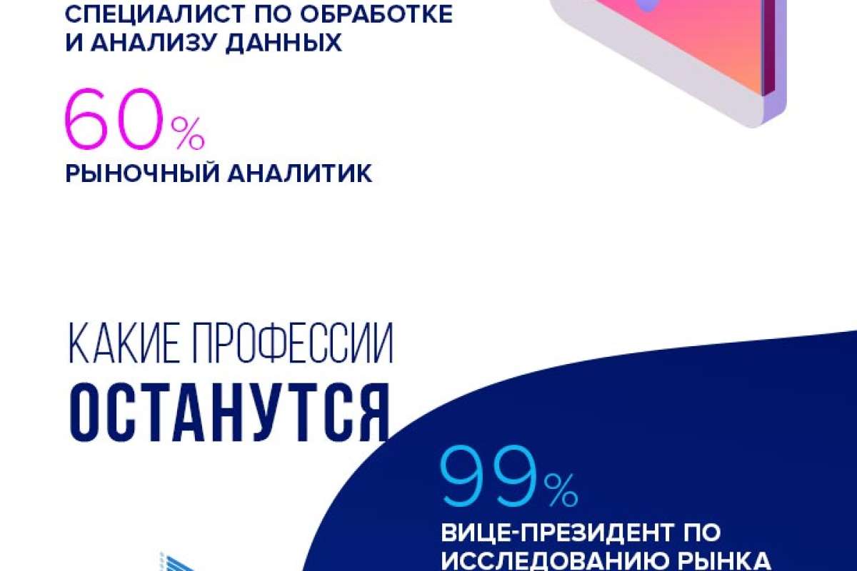 Скорее всего, искусственный интеллект приведет к исчезновению потребности в профессиях, связанных с поддержкой и анализом рынка, см. Инфографику 1.