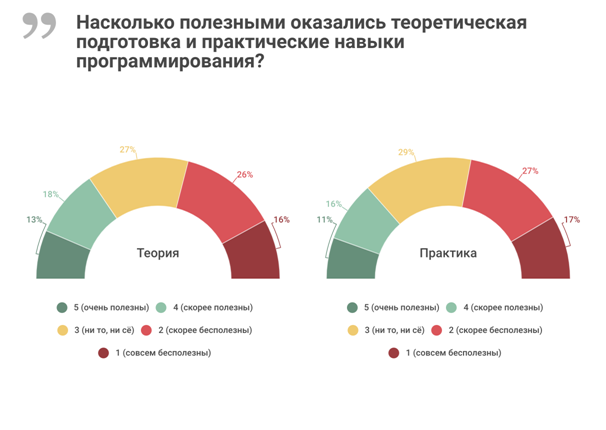 Свое образование — теоретическое и практическое — считают действительно полезным не более трети ИТ-специалистов. (Рис. 3)