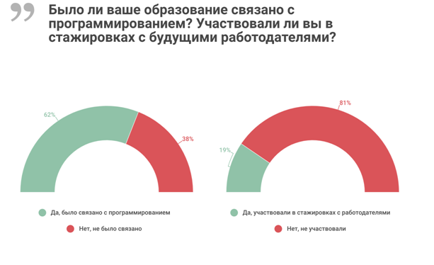 Обучение на практике — в процессе стажировки у будущего работодателя — проходит только каждый пятый ИТ-специалист. (Рис. 2)