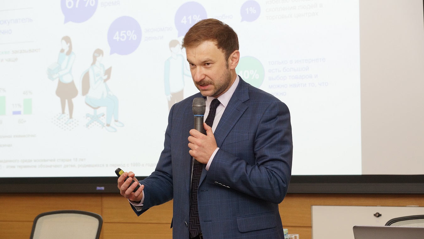 Открыл пресс-конференцию Иван Бутурлин, руководитель аналитического управления ДИТ, рассказом о результатах проведённого его департаментом телефонного опроса около 800 москвичей в возрасте от 18 лет. Хотя бы один раз в год покупки онлайн совершают, по статистике, 8,7 млн жителей Москвы, причём половина из них — ежемесячно. Как показал опрос, 50% москвичей в возрасте от 18 до 25 лет приобретают какой-либо товар через Интернет раз в месяц, а в самой привлекательной для ритейла страте