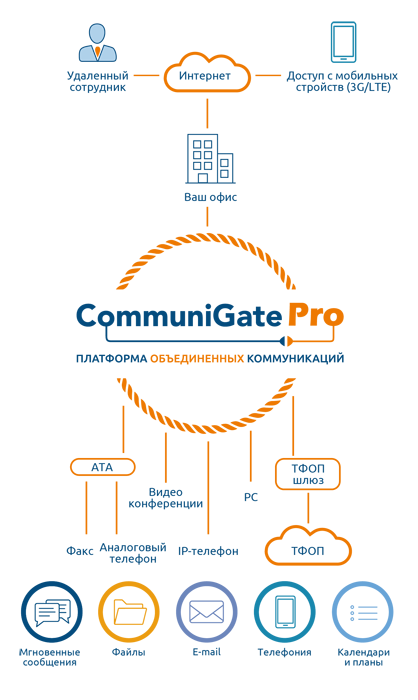 Группа ИТ-компаний CommuniGate Systems осуществляет разработку программного обеспечения, основу которого составляет платформа объединенных коммуникаций CommuniGate Pro. Решение предоставляет пользователям полный спектр коммуникационных возможностей, включая электронную почту, ведение календарей, контроль исполнения задач, проведение аудиоконференций и видеовызовов, обмен мгновенными сообщениями, шифрование данных, хранение корпоративного контента, быструю и защищенную передачу файлов со всех типов устройств, в том числе с мобильных. Использование данного функционала может осуществляться как в полном объеме и по прямому назначению (почта, телефония), так и для решения нестандартных задач.