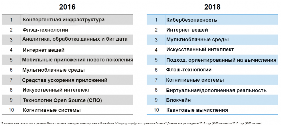 Что мне показалось интересным в этом исследовании, так это сдвиг в инвестициях в технологии, которые компании планируют на ближайшие