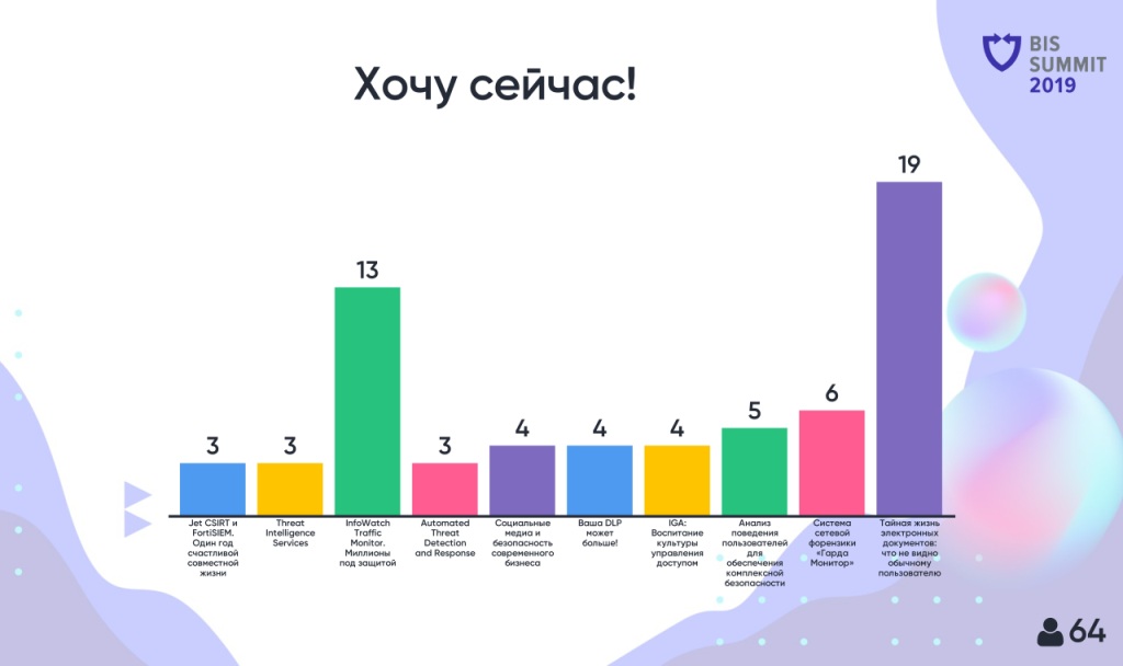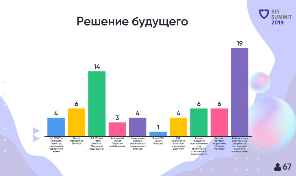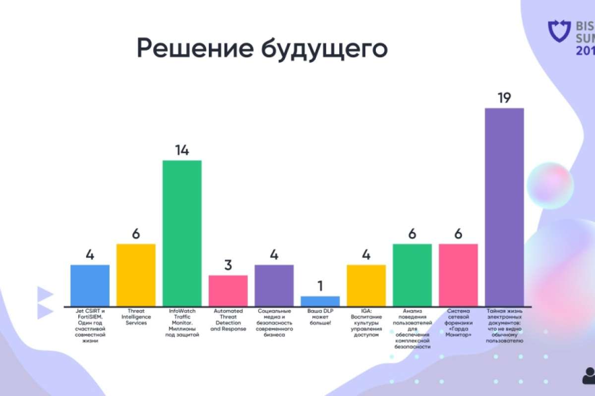 Организаторы постарались сделать мероприятие насыщенным выступлениями и дебатами от ИБ-экспертов и представителей бизнеса без монотонных докладов от поставщиков. В частности, в секции «Технологический трек» был организован блиц-поединок среди 10 компаний-партнеров, каждая из которых представила свое решение на суд участников саммита. В поединке приняли участие такие компании как InfoWatch, «Лаборатория Касперского», «Инфосистемы Джет», Softline, Crosstech Solutions Group и др. Спикеры отвечали на каверзные вопросы от модератора. Техническая схватка завершилась интерактивным голосованием по трем номинациям: «Решение будущего», «Самое дружелюбное ПО» и «Хочу сейчас!».