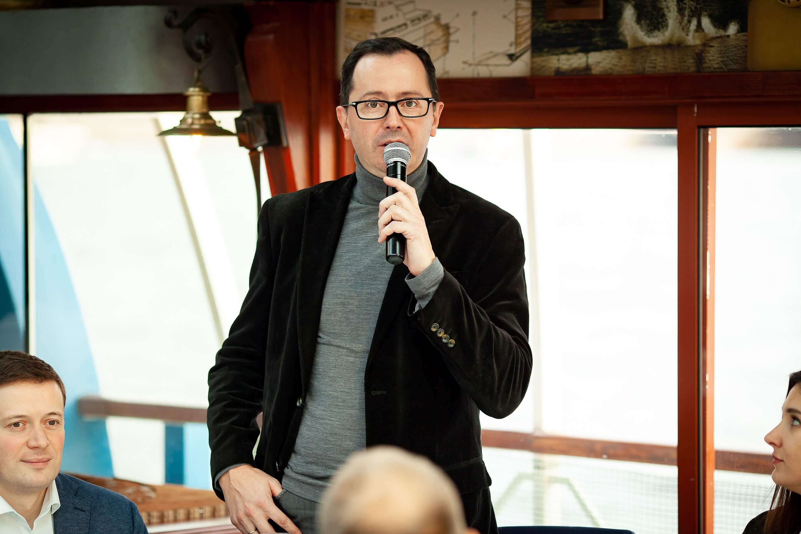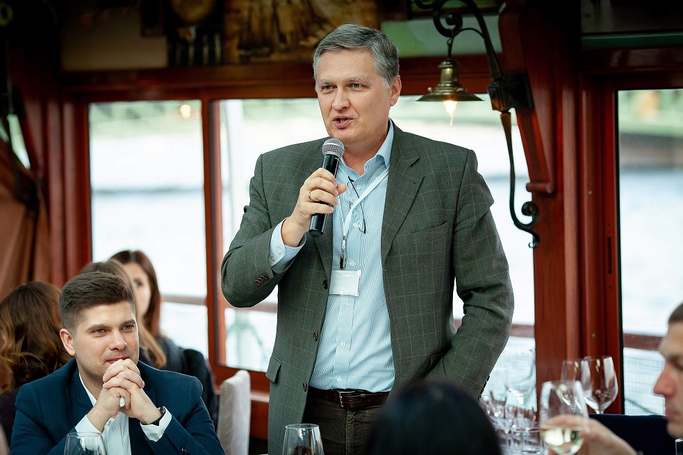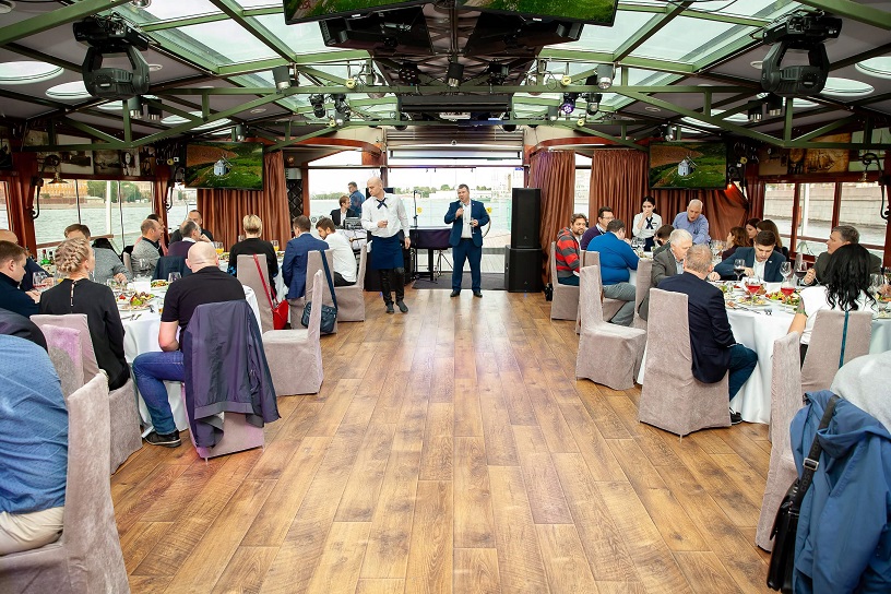 Вечерний ужин прошел в неформальной обстановке на теплоходе «Сити-Блюз», который весь вечер курсировал по Неве. Гостей ждали танцевальные номера, караоке, фотосессии и просто приятное общение и времяпрепровождение.