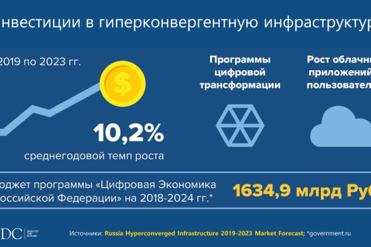 В Москве на форуме «Гиперконвергентная инфраструктура 2019» IDC представила данные первого отчета ежегодного исследования российского рынка инфраструктуры — Russia Hyperconverged Infrastructure
