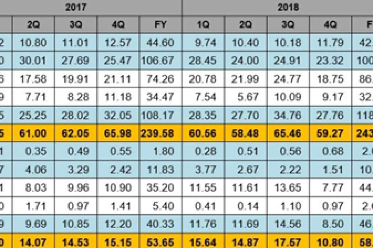 Примечание 1: Продажи каждого подразделения включают межсекторальные продажи