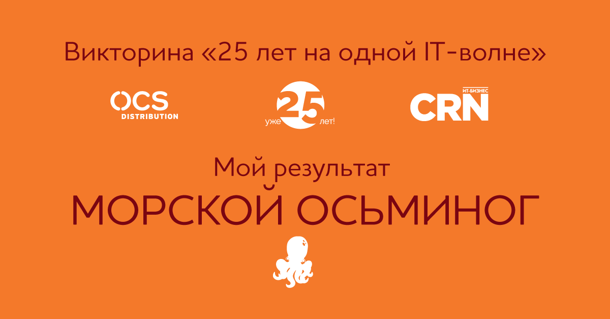 Вспомнить важные моменты истории компании, корпоративные ценности и принципы было решено через проведение совместно с изданием CRN/RE викторины для ИТ-компаний «25 лет на одной IT-волне». В нее вошли 14 вопросов как из истории OCS, так и из неформальной жизни. Участникам викторины, в зависимости от количества набранных баллов, присуждалось звание одного из морских представителей. Всего опрос был пройден более 300 раз, а высший титул «Морской осьминог» получили 28 человек.