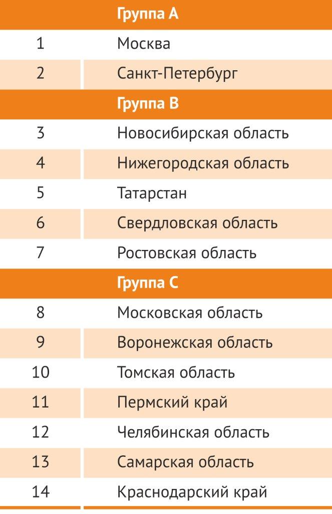 Все 40 регионов рейтинга распределены по