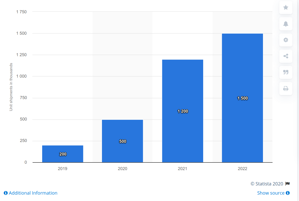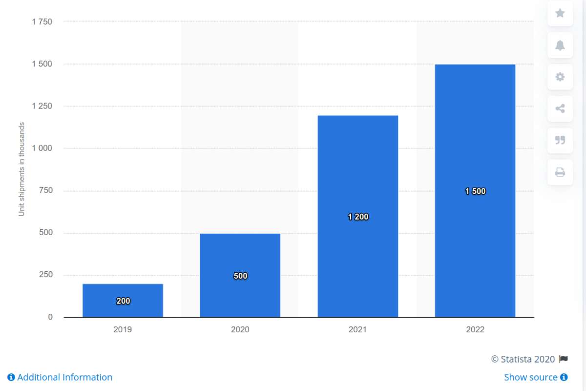 Производители — чисто технически — уже сегодня готовы удовлетворять растущий спрос на HDR и 8K-видеопанели. Другой вопрос, действительно ли этот спрос будет расти желательными для вендоров и канала темпами? Совсем недавно аналитики были весьма оптимистичны в этом отношении. По прогнозу, опубликованному на портале Statista около года назад, уже по итогам 2019 г. в одних только США ожидалась отгрузка в канал 200 тыс. 8К-телевизоров, в