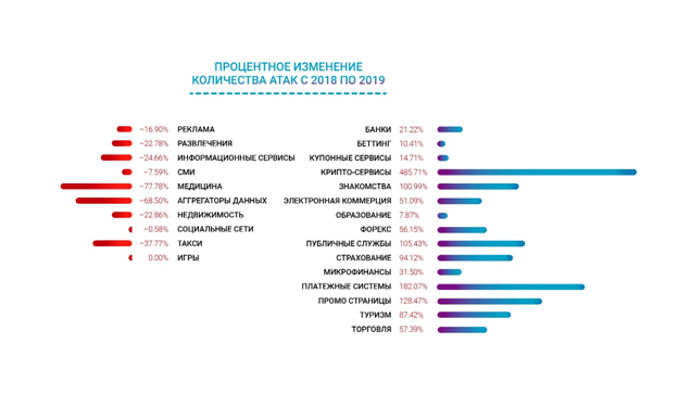 «По нашим оценкам, общее количество DDoS-атак за 2019 год выросло примерно в 1,5 раза. Такое увеличение числа инцидентов было достигнуто за счет роста атак на отдельные индустрии: банки, платежные системы, криптобиржи, онлайн-ритейл, сайты знакомств, — комментирует Артем Гавриченков, технический директор Qrator Labs. — Можно наблюдать, что в последний год наблюдался передел определенных рынков между отдельными его игроками. И если крупный бизнес может выдержать нападения, то для среднего бизнеса это большая проблема: у небольших компаний часто нет свободных финансовых ресурсов для использования внешних решений по защите на постоянной основе, поэтому они чаще других становятся жертвами DDoS-атак».