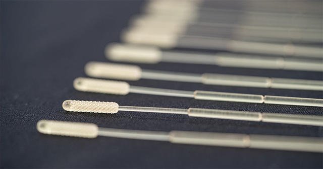 Похожими страницами обзавелись и другие гиганты индустрии, например компания 3DSystems, которая смогла наладить кроме всего перечисленного производство специальных назальных палочек для взятия анализа на коронавирус, нехватка которых остро ощущалась в США, особенно в первые недели эпидемии (рис. 6). Для печати этих модели были использованы производительные 3D-принтеры, печатающие биосовместимыми материалами.