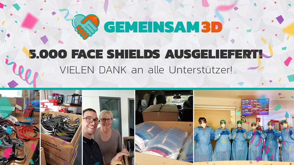 Ну и напоследок еще несколько примеров. Модель защитного щитка разлетелась по миру буквально за считанные часы, и мейкеры по всему миру начали ее производство и доставку врачам. Например, так сделали наши коллеги из немецкой компании-дистрибьютора ИТ и 3D-оборудования OKM 3D.