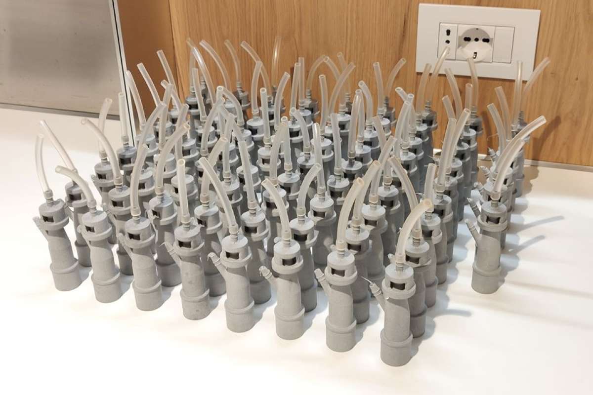 Все началось на севере Италии чуть больше месяца назад, когда больницы испытали одномоментный шок от увеличения больных, которым требовалось подключения к аппаратам ИВЛ. Проблема заключалась даже не в нехватке самих аппаратов ИВЛ, а в том, что в каждом аппарате установлен кислородный клапан, с помощью которого больных подключают к системам искусственной вентиляции легких. Клапаны рассчитаны на использование только в течение 8 часов, после чего его надо менять. От наличия этой маленькой пластиковой трубки реально стали зависеть жизни людей. Через СМИ врачи обратились за помощью, и она пришла откуда не ждали: местный стартап, занимающийся дизайном — компания Isinnova прислала в больницу двух своих инженеров, которые взяли клапан и через 3 часа приехали назад с таким же напечатанным на настольном 3D-принтере (рис. 1). Тут же провели испытания на пациенте, и было установлено, что клапан работает хорошо. Врачи попросили привезти хотя бы 100 таких же, и речь шла только об одной больнице.